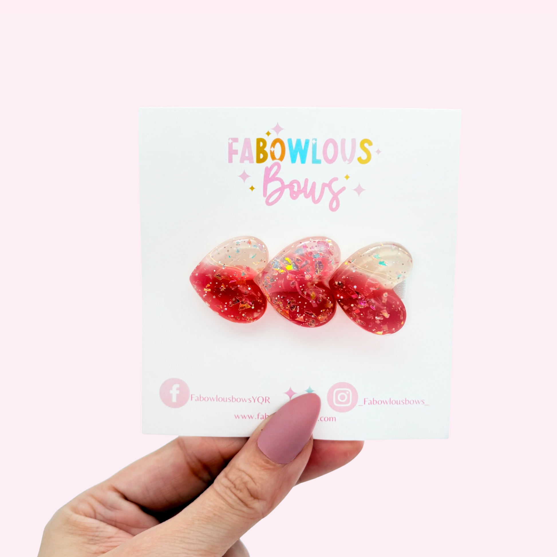 Glitter Trio Hearts Red/White - Bar Clip