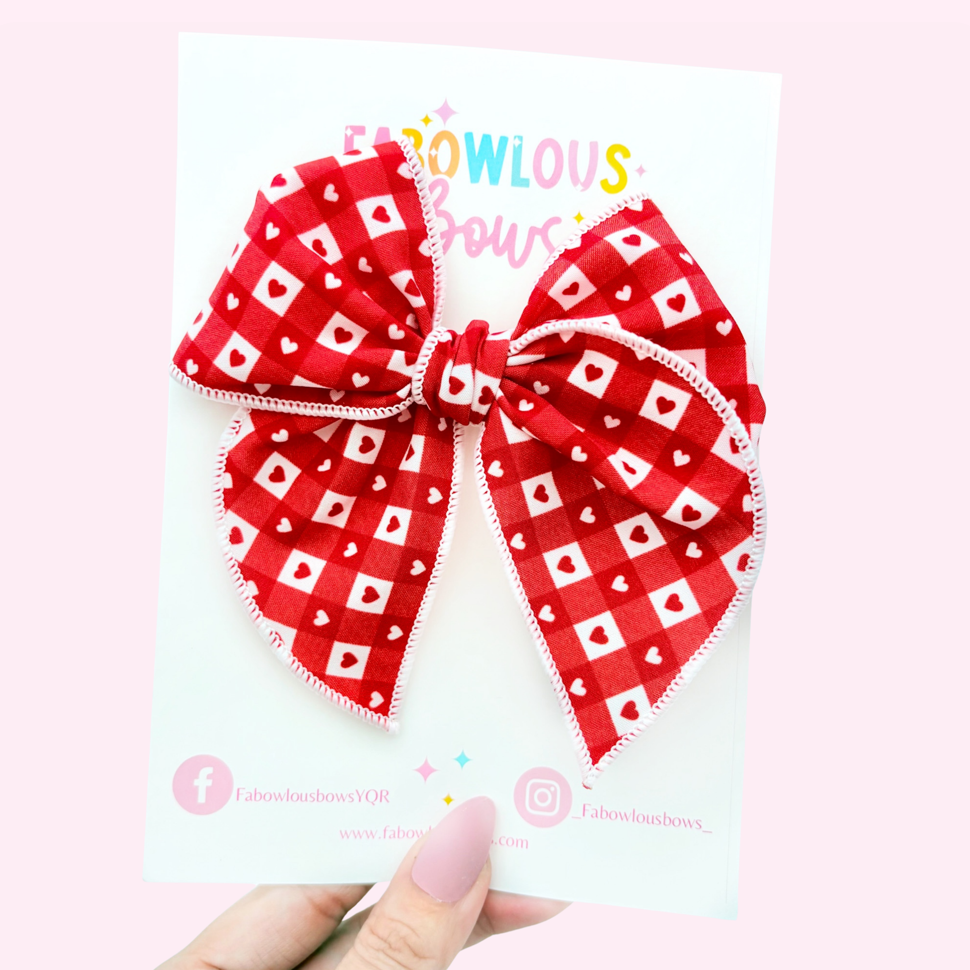 Gingham Hearts - Fabric Fable Bow